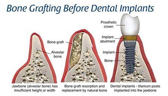 If the jawbone is too weak and a dental implant surgery is performed, the jawbone will not be strong enough to withstand the pressure exerted by chewing and will not support the implant.